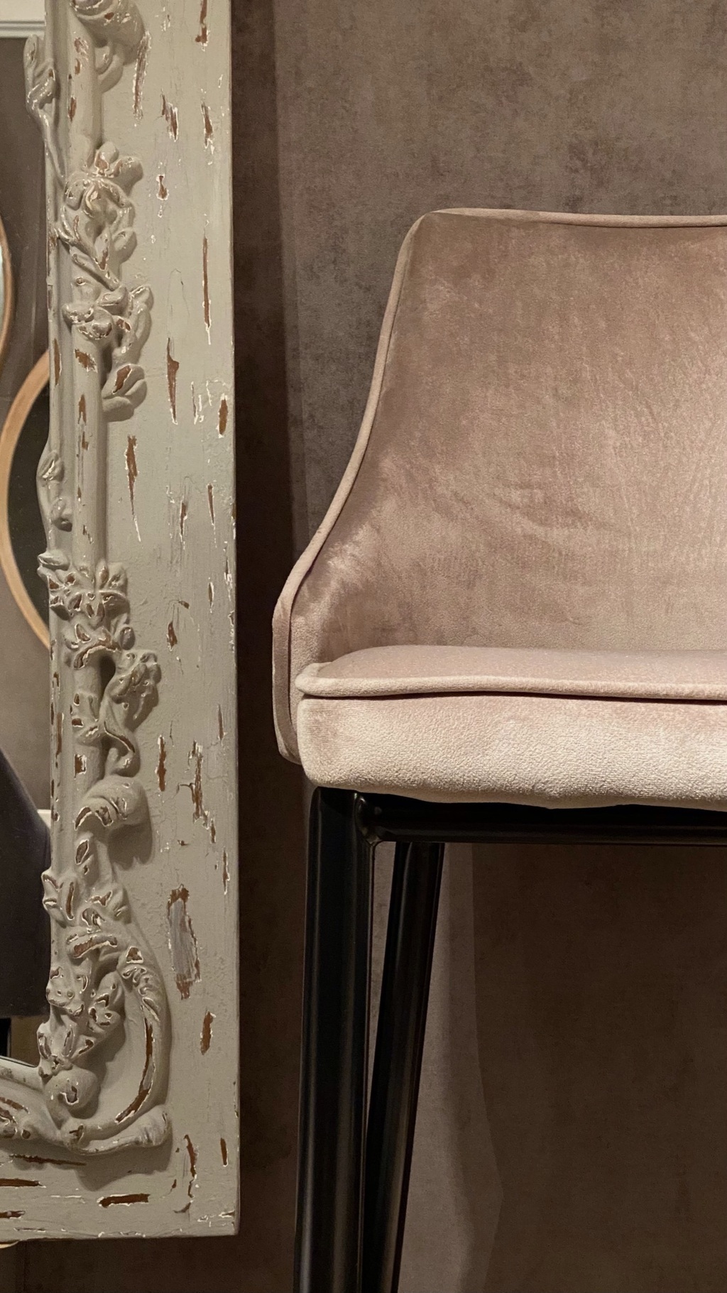 Tapizado en género terciopelo, con patas negras de metal en terminación mate.